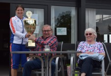 Erneut unter Corona-Bedingungen konnte unser, von Edwin Müller gesponsertes, Schleifchenturnier schließlich am 12. September stattfinden. Bei bestem Tenniswetter gingen 26 Teilnehmer und Teilnehmerinnen im Alter von 10 bis Mitte 80 an den Start und kämpften in 5 Spielrunden à 30 Minuten in immer wechselnden Mixed- bzw. Doppelpaarungen gegeneinander um Sieg und damit Schleifchen. Nach 2 1/2 Stunden Spiel mit Spaß und Spannung stand mit den meisten errungenen Schleifchen Evi Schneider eindeutig als Siegerin fest und durfte so den Pokal entgegennehmen, auf dem nun ihr Name eingraviert wird. Auf die Siegerehrung folgte wie gewohnt der gesellige Teil der Veranstaltung und alle konnten sich gemeinsam mit Heidrun und Edwin Müller beim traditionellen Weißwurstessen und Freibier stärken und in lockerer Runde plaudern und genießen…